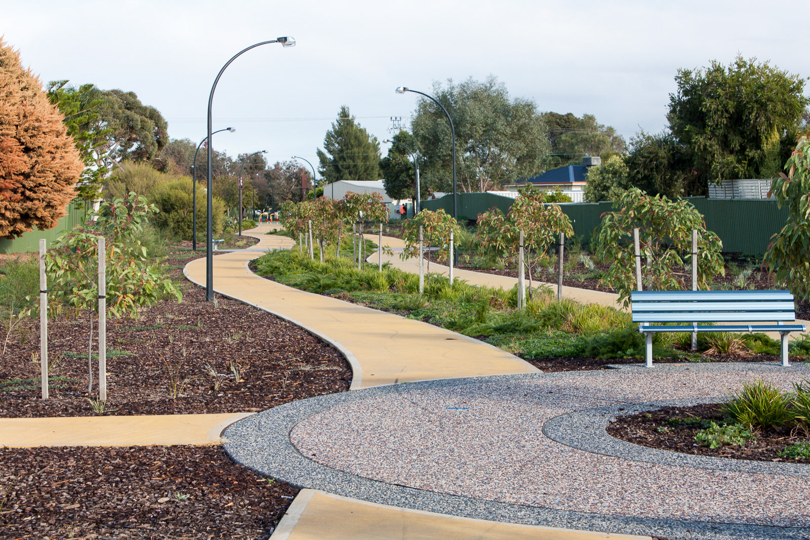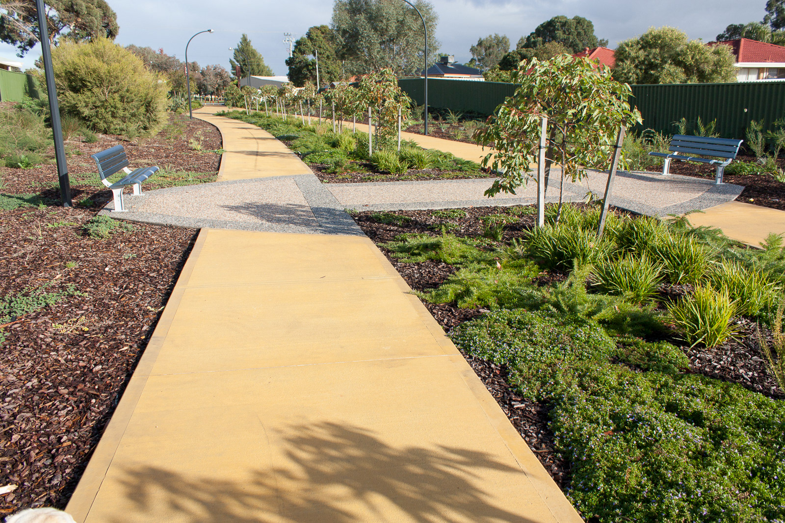 The City of Gosnells coordinated the conversion of a storm water drainage reserve into public parkland incorporating new access ways, rest areas and landscaping.