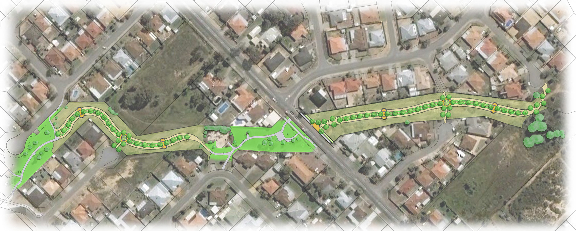The configuration of the existing cleared reserve enabled the creation of a new linear park with links to existing open space, streetscapes and playgrounds.