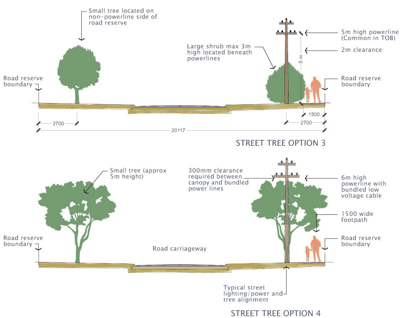 The process entailed a detailed analysis of existing streetscape conditions with an audit of existing trees and a presentation of options for incorporating trees with existing powerlines.