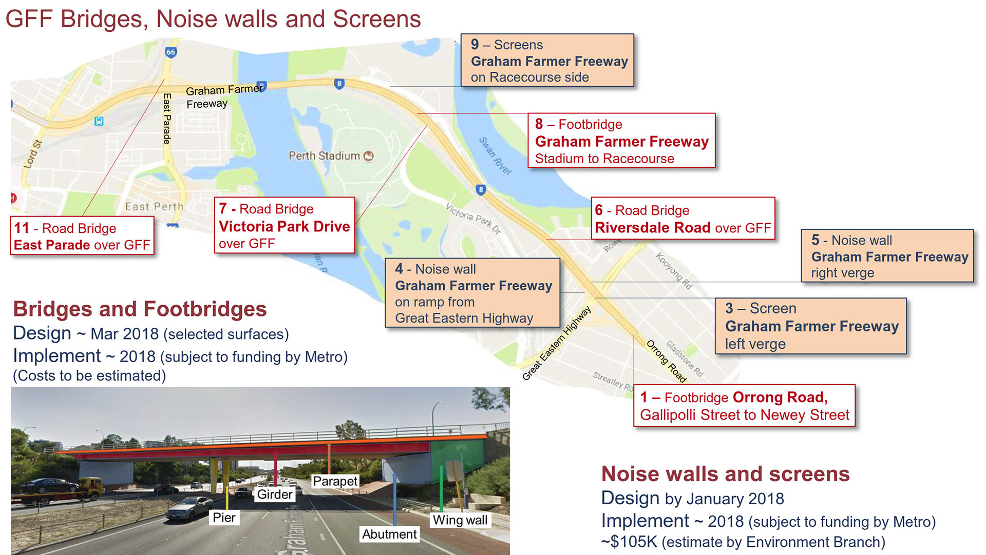 Development of the WCI programme by Main Roads WA entailed planning and design of urban and landscape elements including bridge structures, noise walls, tunnel entrance areas and