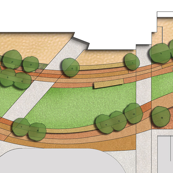 Landscape treatments include hard and soft landscape elements and utilise long flowering native species.
