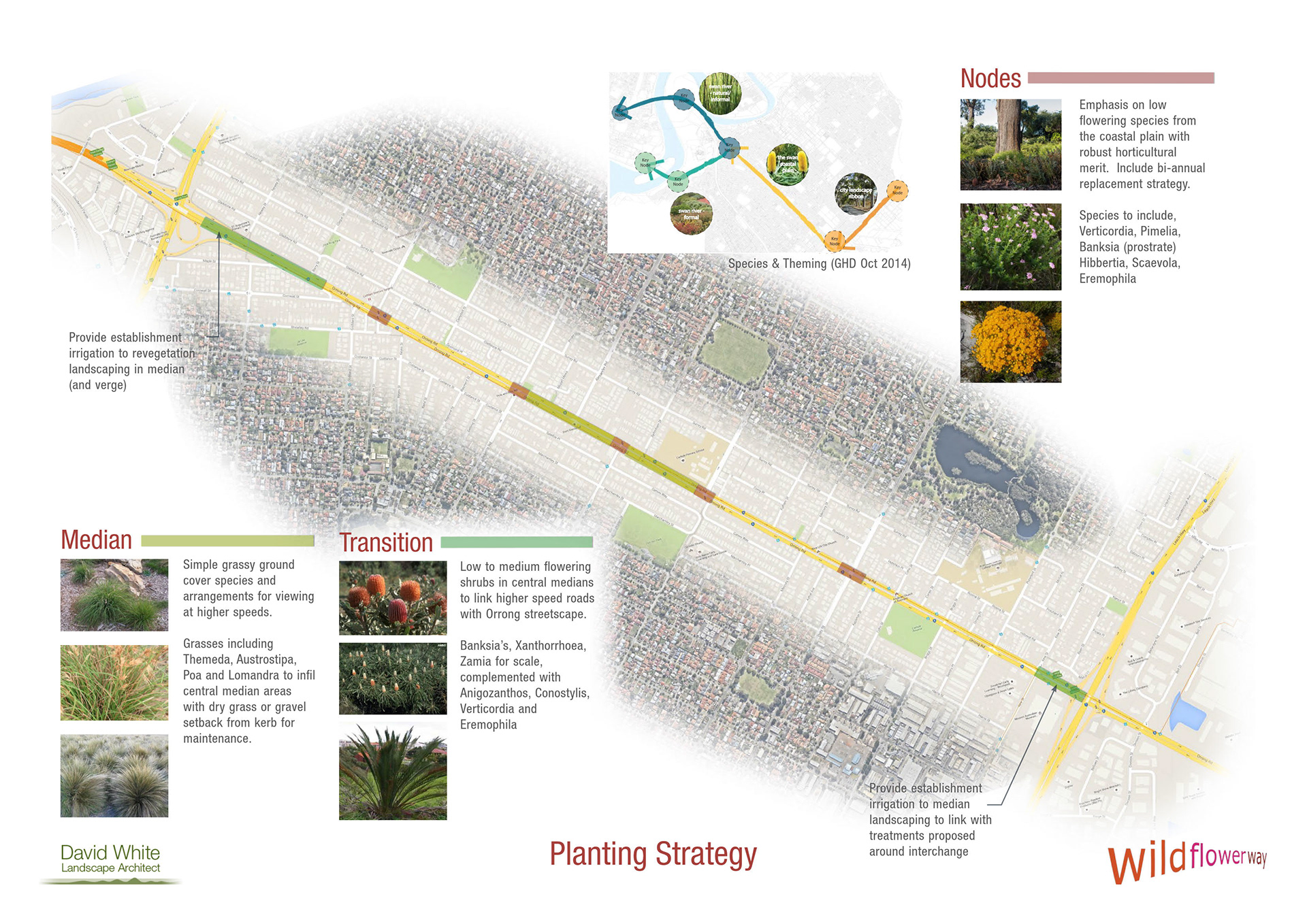 In 2017, landscape planning, design and construction was undertaken in the first stage of a multi year programme to establish memorable road journeys connecting with the Perth CBD.